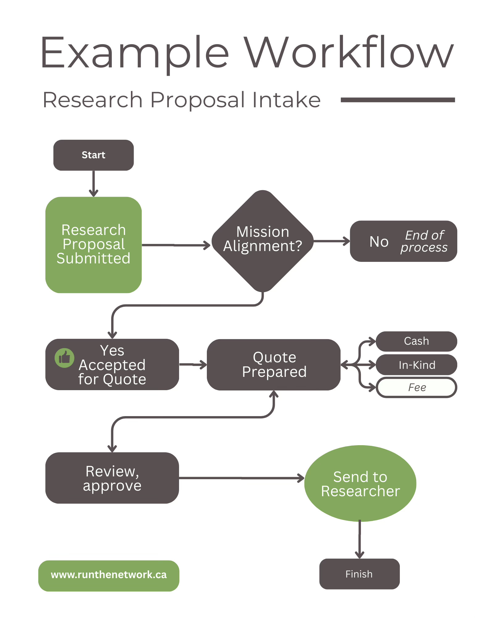 This diagram shows a basic example of a workflow with the different paths a research proposal submission can take.